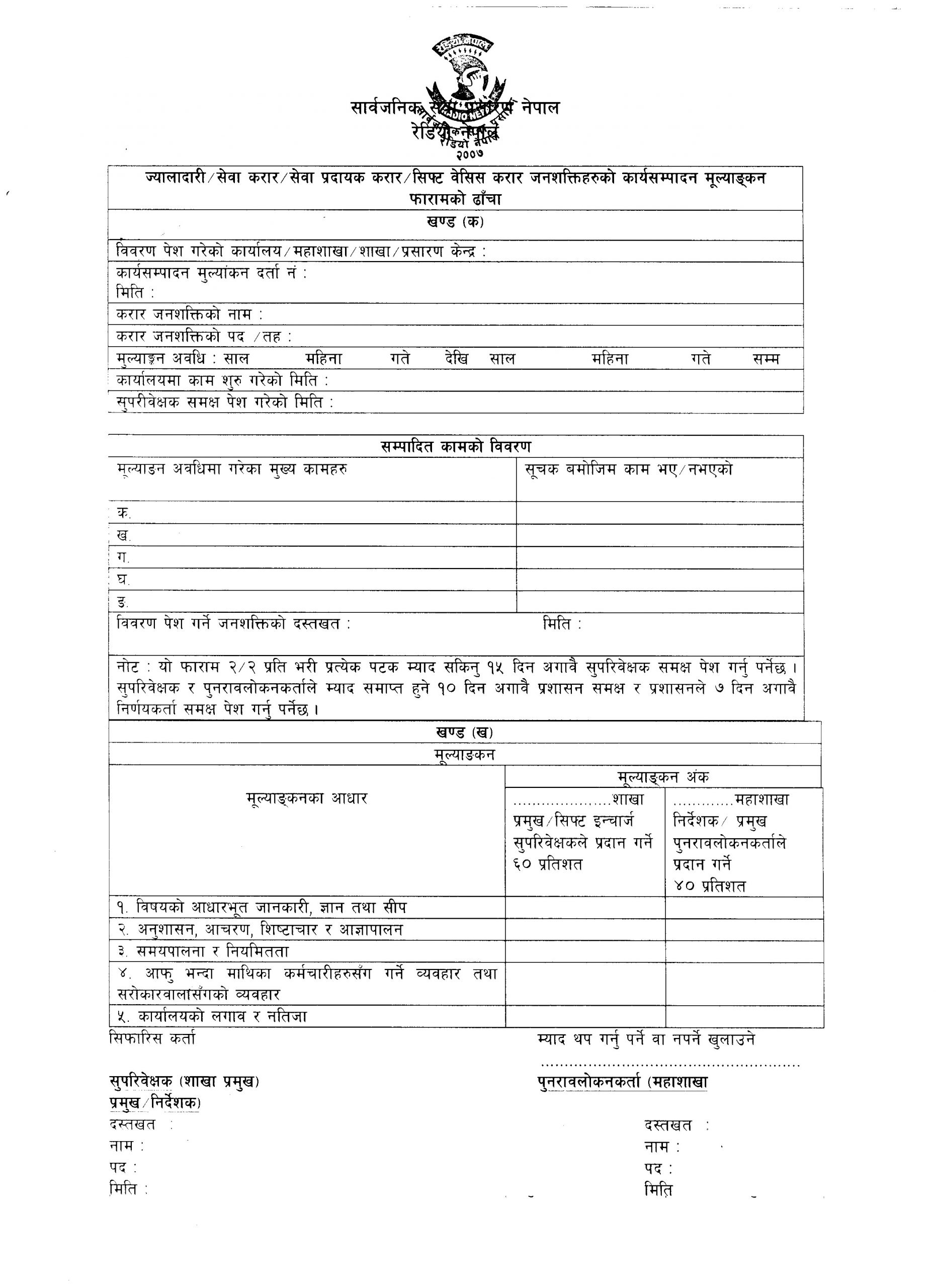 कार्यसम्पादन मूल्याङ्कन फाराम-सहायकसस्तर