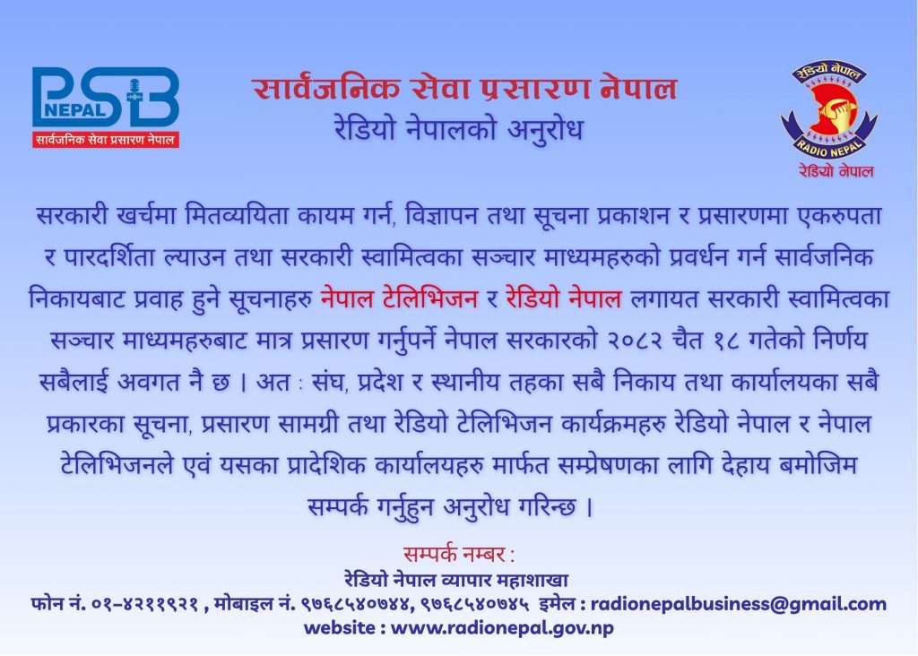 सार्वजनिक सेवा प्रसारण रेडियो नेपालको अनुरोध